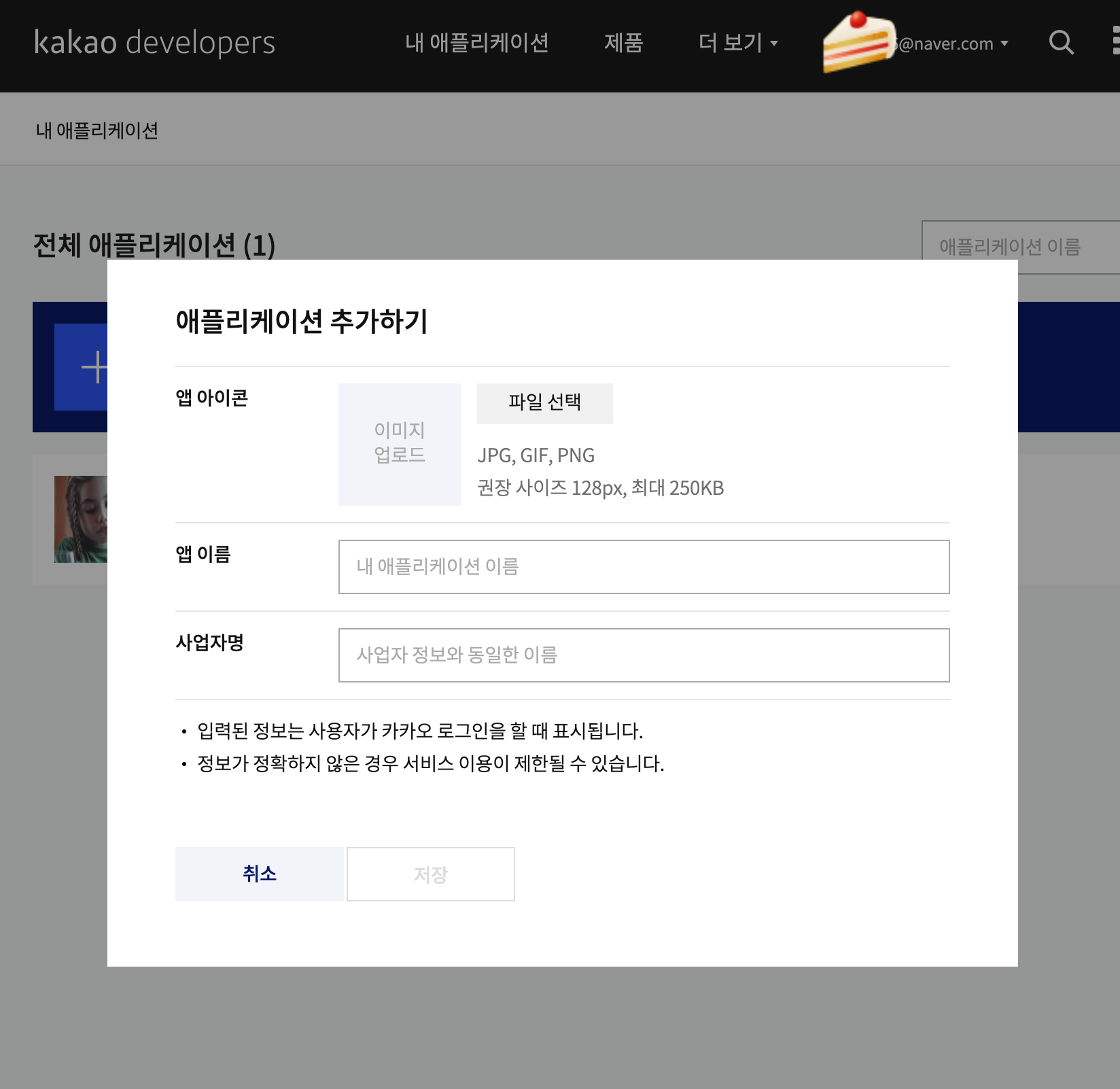 내 어플리케이션 > 어플리케이션 추가하기에서 앱을 등록해줍니당